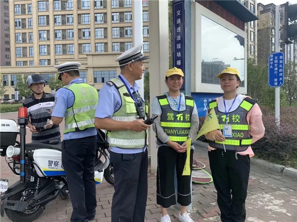 在車輛川流不息的馬路邊,在縱橫交錯(cuò)的十字路口,時(shí)常可以看到我們天一學(xué)員身穿熒光背心、頭戴小黃帽、手持小黃旗在進(jìn)行安全文明勸導(dǎo),儼然城市中一道靚麗風(fēng)景線。