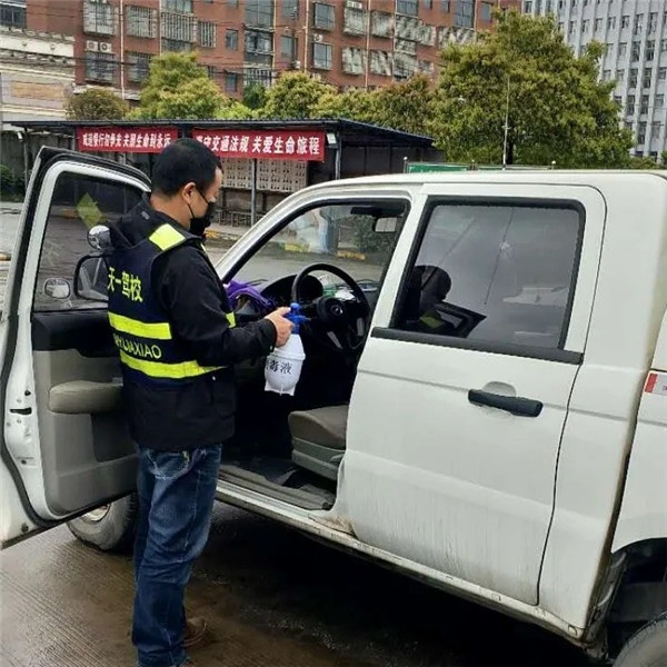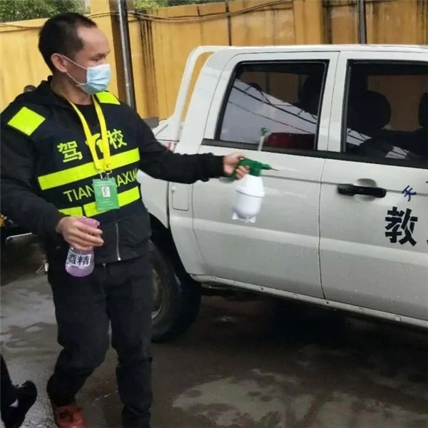科目三培訓車在出駕校前完成消殺工作