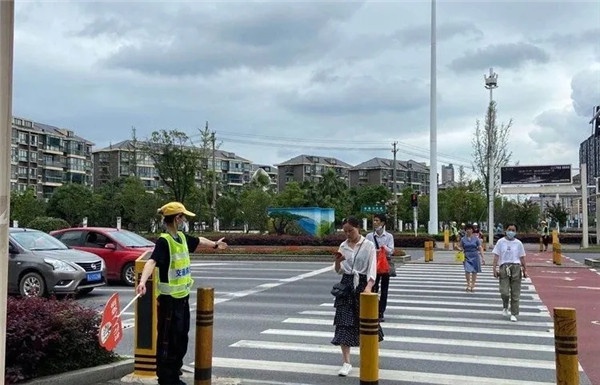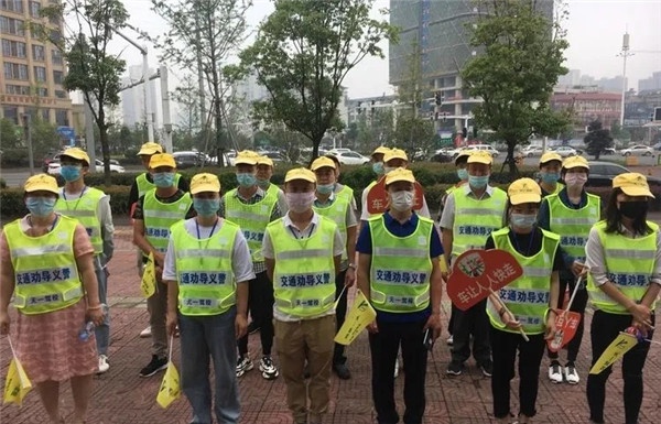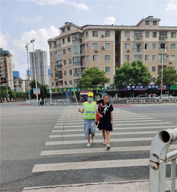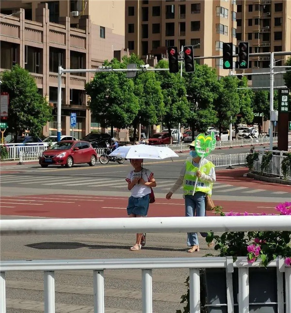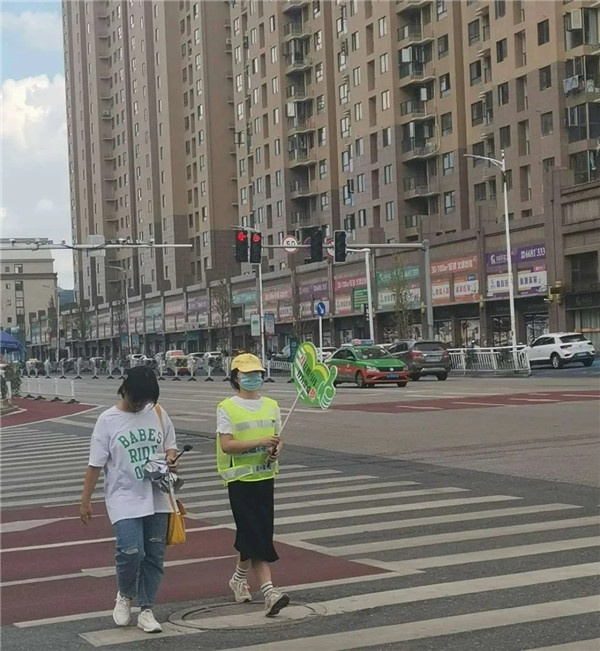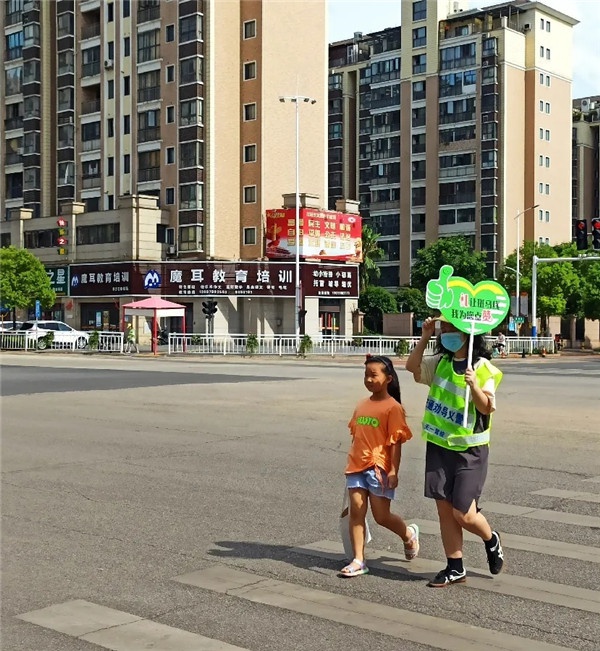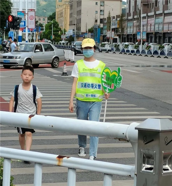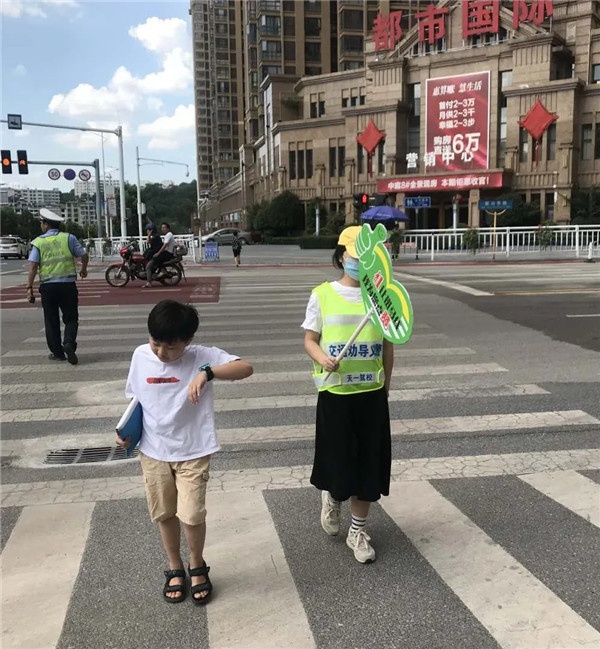 在車(chē)輛川流不息的城市主干道上,在人來(lái)人往的十字路口,時(shí)??吹轿覀兲煲粚W(xué)員頭戴小黃帽,身穿熒光背心,那揮動(dòng)的標(biāo)識(shí)成為創(chuàng)建文明城市中一道獨(dú)特的風(fēng)景。