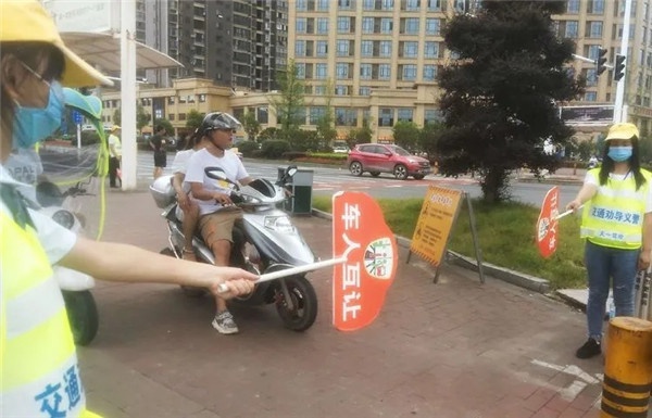 天一學(xué)員通過(guò)揮旗、手勢(shì)、言語(yǔ)勸導(dǎo)等方式,對(duì)行人不走斑馬線、非機(jī)動(dòng)車(chē)不按指示行走等交通違規(guī)行為進(jìn)行了勸阻和引導(dǎo)。耐心細(xì)致的向行人傳播遵守交規(guī)、文明出行知識(shí),用熱情和微笑感染著身邊的廣大群眾。